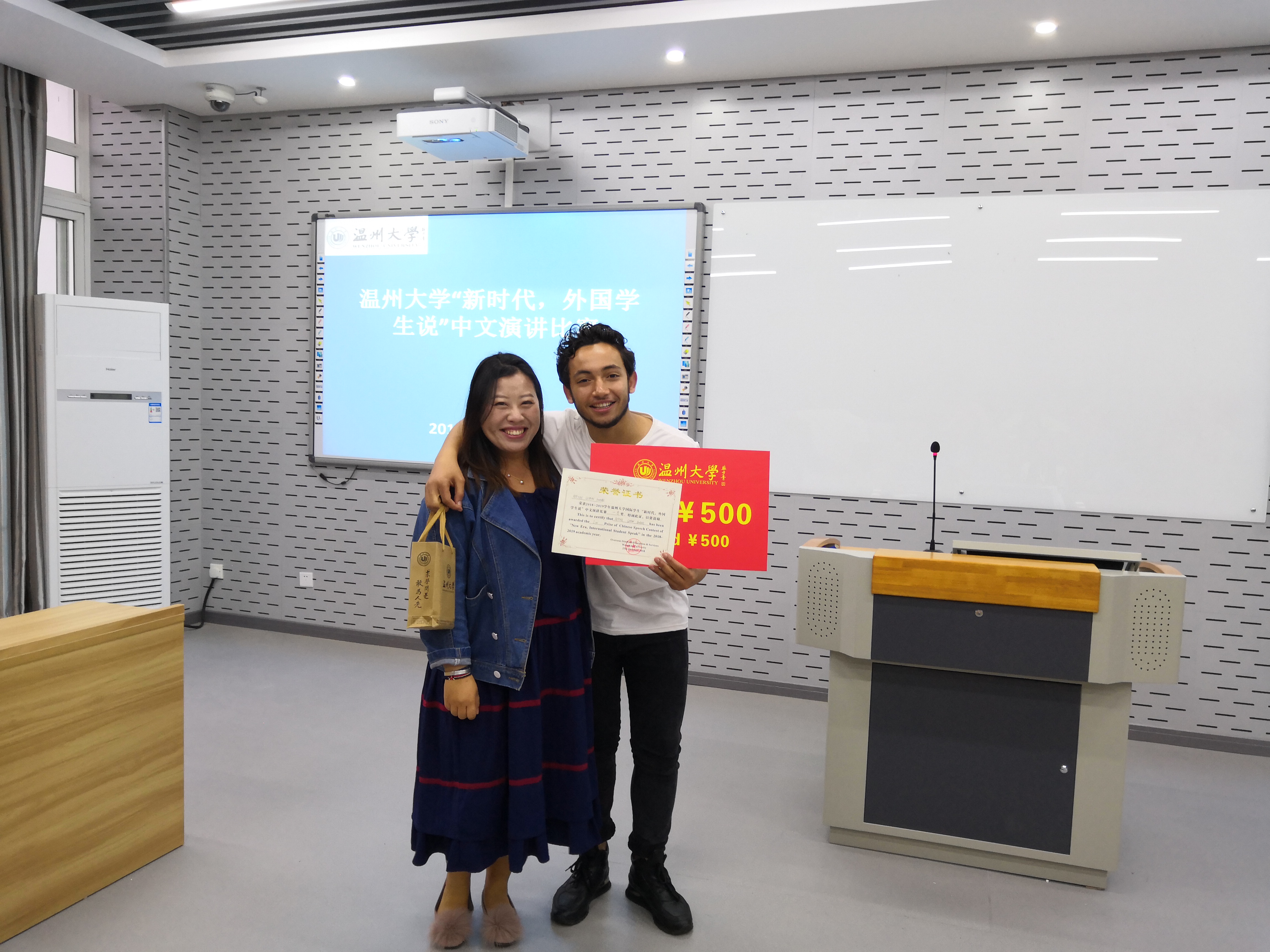 演讲比赛以“新时代”为主题,展示国际学生对中国、浙江高端技术制造能力、现代新农业技术、中国传统民俗文化等方面的独特看法,国际学生们一一上台讲述自己的亲身经历。来自乌兹别克斯坦的MAMASOBIROV MIFTOKHIDDIN以在温州大学过中秋节为切入点,对比了自己国家的传统节日与中国传统节日,他说在学校吃月饼过中秋节是非常温暖的一件事,让他体会到家的感觉。来自加纳的王汉别出心裁,以一个“来自加纳的小伙子的故事”为主题,向在场师生分享了自己在中国学习、生活的有趣经历,他的演讲诙谐幽默、语言流畅,赢得阵阵掌声。来自塞拉利昂的JENG ABU BAKARR谈到他眼中的中国时说道,中国的科技发展、快捷支付方式、畅通的交通网络和便利的出行方式都让这里的生活变得非常舒适,他期待今后能在中国继续深造,走进更多城市,感受这里的一切。活动最后,评委老师分别为获得一、二、三等奖的学生颁奖。