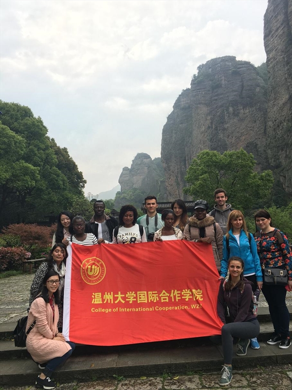 留学生的课余学习生活,帮助他们了解温州地域文化的特色,4月16日,国际合作学院组织留学生游览了“东南第一山”——温州雁荡山。留学生们对于此次活动热情高涨,来自乌克兰、乌兹别克斯坦、尼日利亚、巴基斯坦、喀麦隆、白俄罗斯等国家的留学生参加了此次活动。