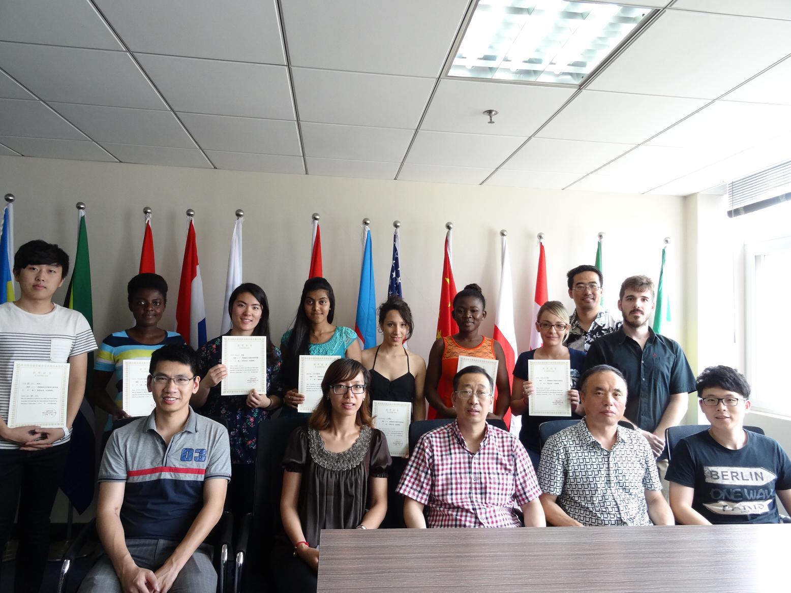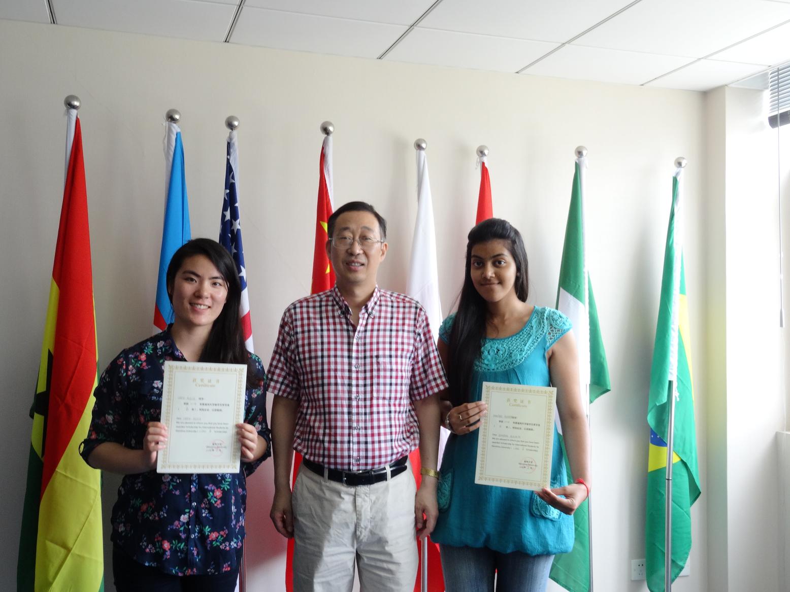 最后,严晓鹏院长、朱建平书记和包含丽老师分别为获得一二三等奖学金的10名留学生颁发了获奖证书。
