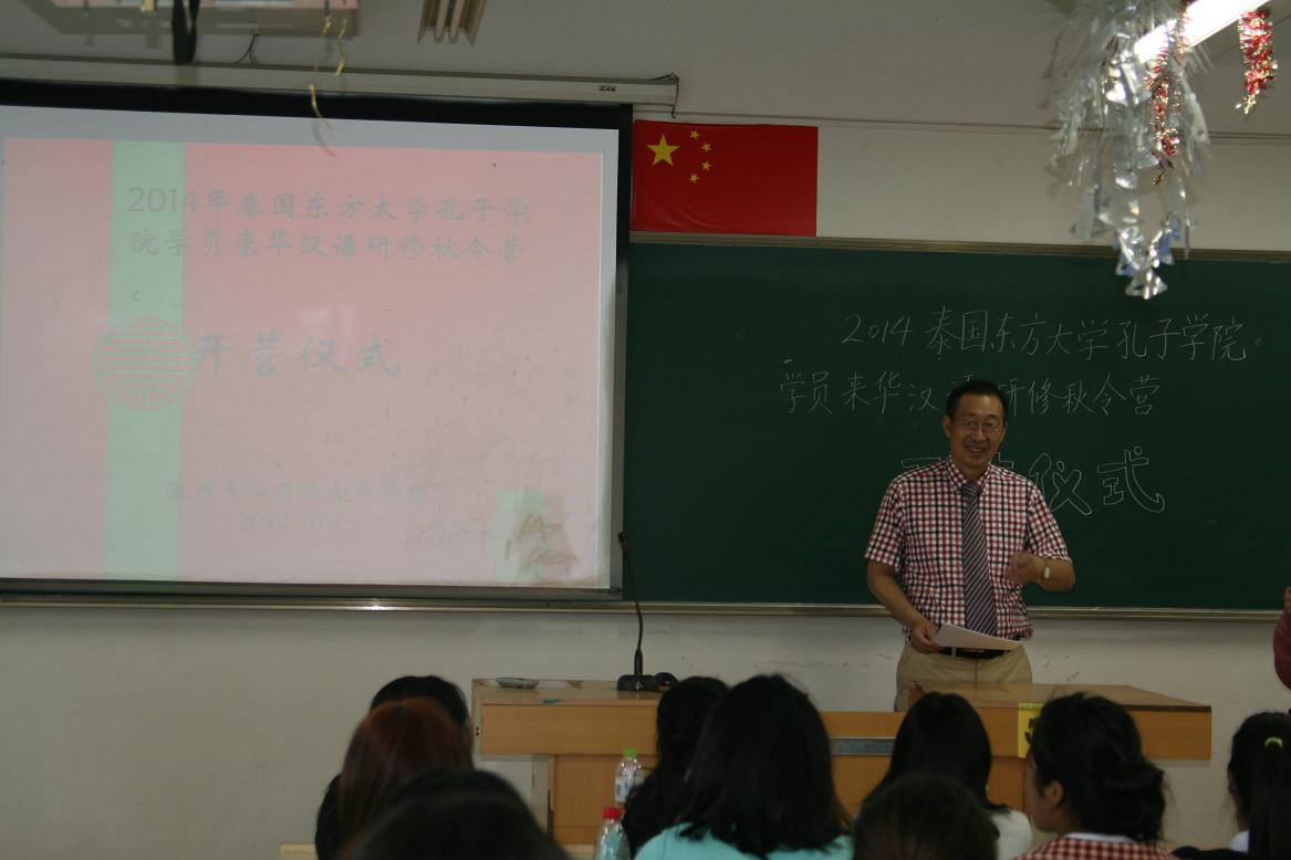 严晓鹏院长在给营员们的致辞中,介绍了温州大学和泰国东方大学的合作成果,引用了习近平主席致孔子学院成立十周年的贺信,表示要认真办好本次秋令营,为孔子学院的持续发展贡献出一份力。
