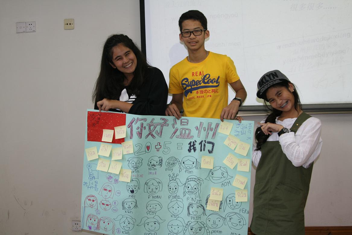 本届秋令营是继2011年后国际合作学院承办的第三次来华孔院营员汉语研修活动,此次的研修课程,除了语言课程、体验课程、文化课程之外,还增加了“我和温州的故事”专题制作,营员们在这一制作中,纷纷发挥自己特长,写下或画下这15天与温州有关的点点滴滴,并将这承载着美好回忆和祝福的海报作为礼物赠送给学院。