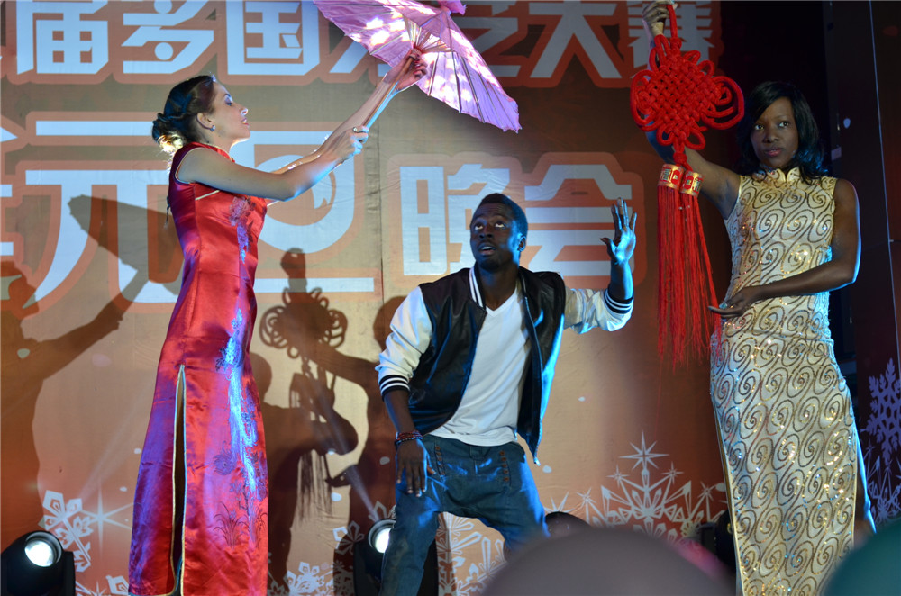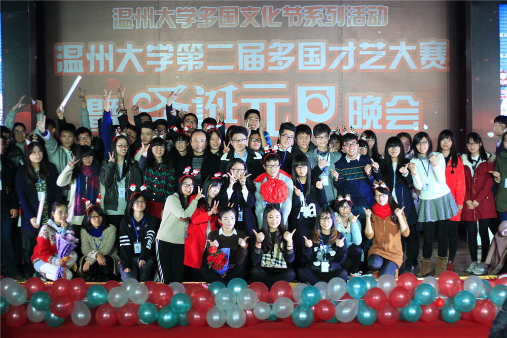 品尝完美食后,师生们共同参加了温州大学多国文化节系列活动暨2014圣诞元旦晚会。晚会形式多样、精彩纷呈,异域风情与中国传统艺术突显了文化交融的和谐主题。中外合璧的主持人阵容亦是晚会的一大亮点,来自俄罗斯的主持人喀秋莎成为晚会现场一道亮丽的风景。晚会在热情奔放的开场舞中拉开帷幕,随后精彩的节目轮番上演,舞蹈串烧《Hot Christmas》、《江南style》及新颖的荧光舞充满激情,调动了大家的热情,驱赶了冬夜的寒气;精彩且略带幽默的魔术让现场笑声惊叹声此起彼伏;来自俄罗斯、西班牙、意大利、泰国、加纳等国家的13名留学生参演的舞蹈《我的中国范儿》将晚会推向了高潮:西洋味十足的爵士舞步,中国韵浓郁的曼妙旗袍,江南水乡特有的油纸伞,温州本土特色的节奏饶舌,舞蹈以巧妙的形式将西洋风、中国范、江南韵、温州味融合在一起,加上留学生们娴熟精妙的舞步,不禁让人眼前一亮;非洲留学生和泰国留学生的乐队表演,深情献唱,引发现场观众的共鸣,赢得阵阵掌声;晚会中穿插互动小游戏,现场观众参与踊跃,大家玩得不亦乐乎,气氛极其热烈。