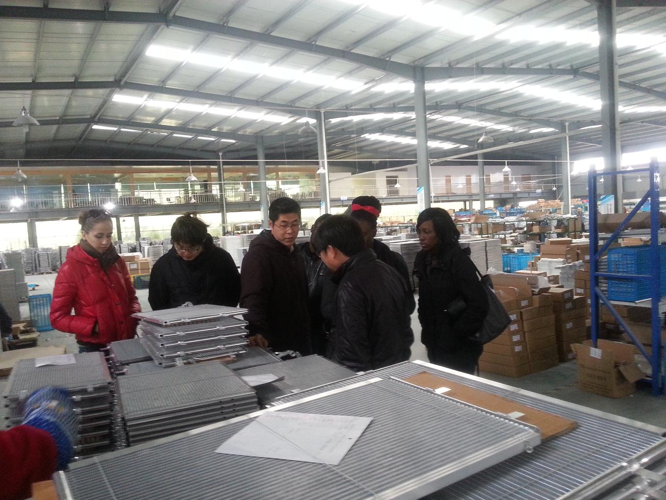 图为留学生参观正博汽车散热器制造厂