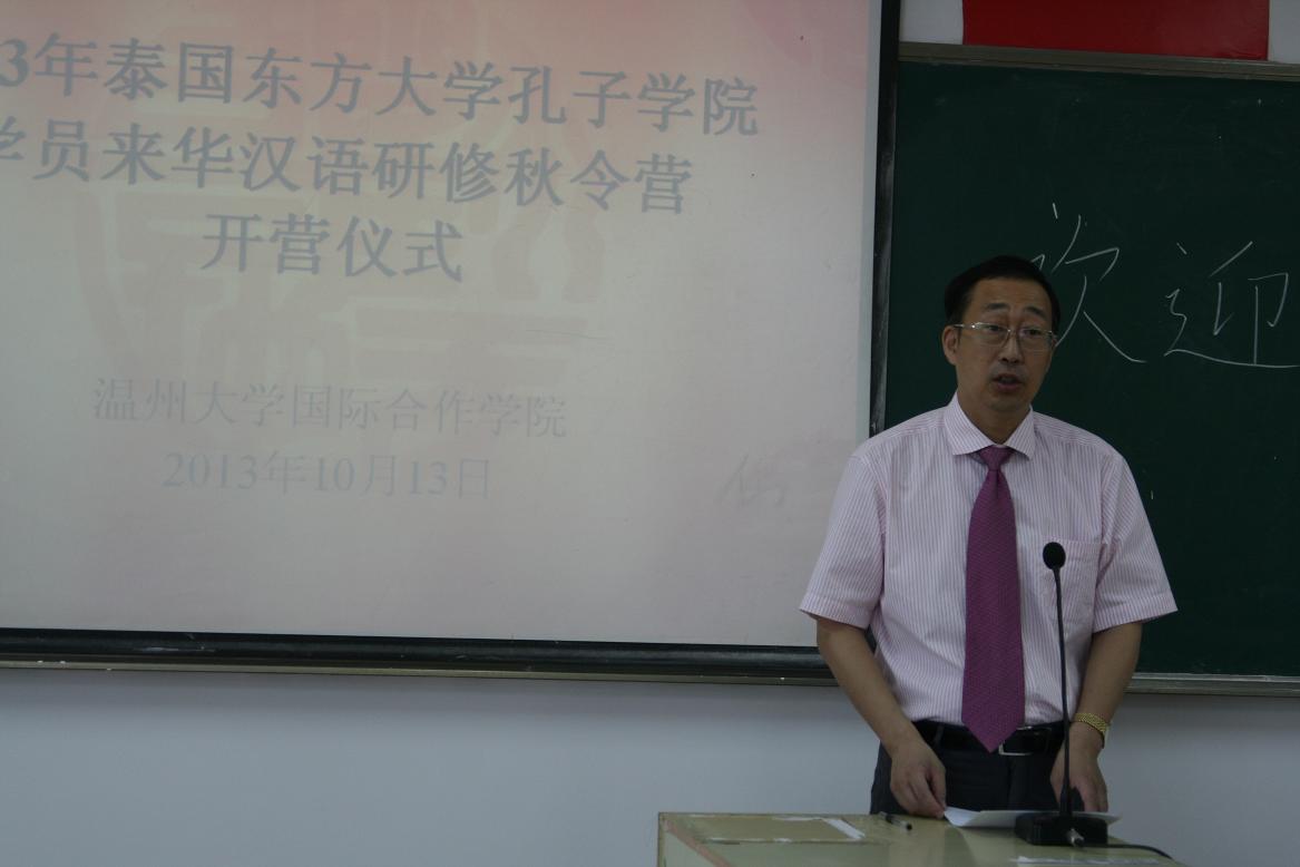 严晓鹏院长在给营员们的致辞中,回顾了温州大学和泰国东方大学的合作历史,并特别引用了李克强总理在泰国国会上发表的“让中泰友好之花结出新硕果”的演讲,表示要贯彻李克强总理的讲话精神,认真办好本次秋令营,为中泰教育文化交流做出贡献。