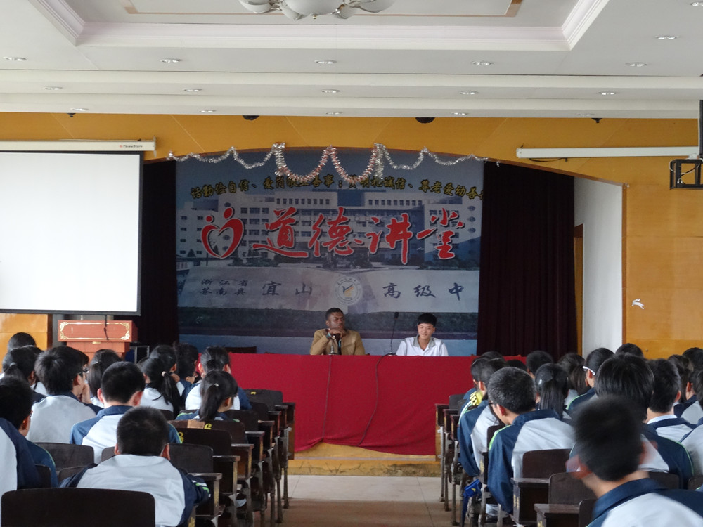 图为我校留学生与宜山高级中学学生进行交流