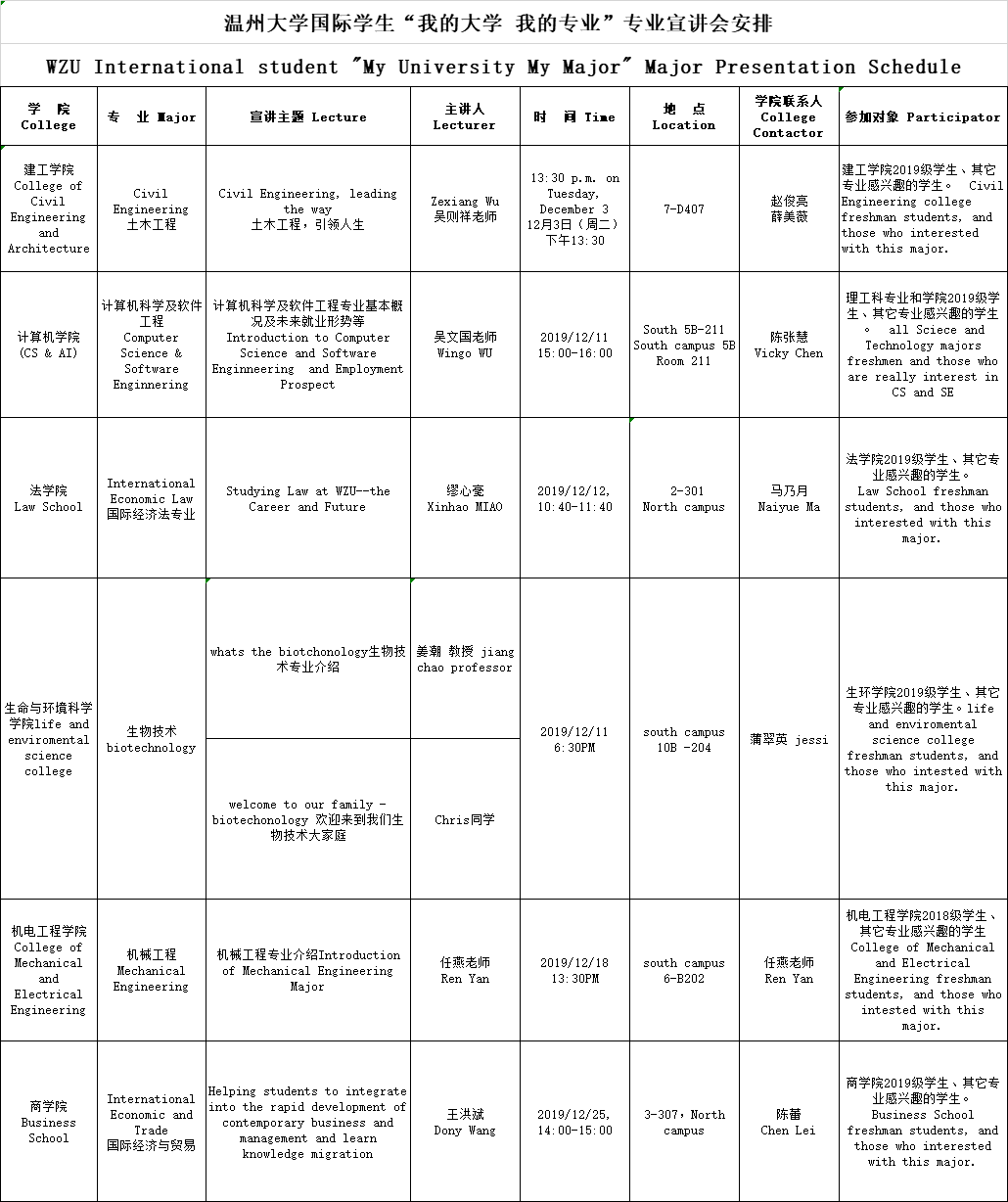 In order to help freshman have a further understanding for their major, we hold "My University My Major" Major Presentations from six colleges in coming days. All freshman students are required to attend your major lecture,and also welcome those who interested with this major.The scheduels are as follows