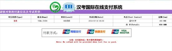 6)After the successful registration and payment, the test taker can receive the confirmation information around 15 days prior to the test date, and may log on the registration website to print the test admission ticket, or take the test admission ticket at the exam outlet where he/she gets registered.
