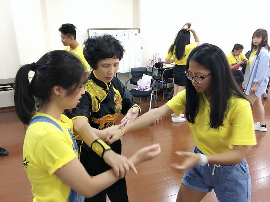 随后木老师还提到“功夫能强身,功夫更能防身”。南拳招式朴实,却是男女皆宜,一招一式都各有其用,在实战防身时是能派上用场。在学完该套拳法之后,木师傅从中选出三个防身动作让营员们重点学习。这些动作能使人在紧急情况下迅速、机智地挣脱袭击目标,从而为自己赢得逃跑的时间。营员们跟着木师傅反复演练,直到最终掌握这套实用的防身之术。