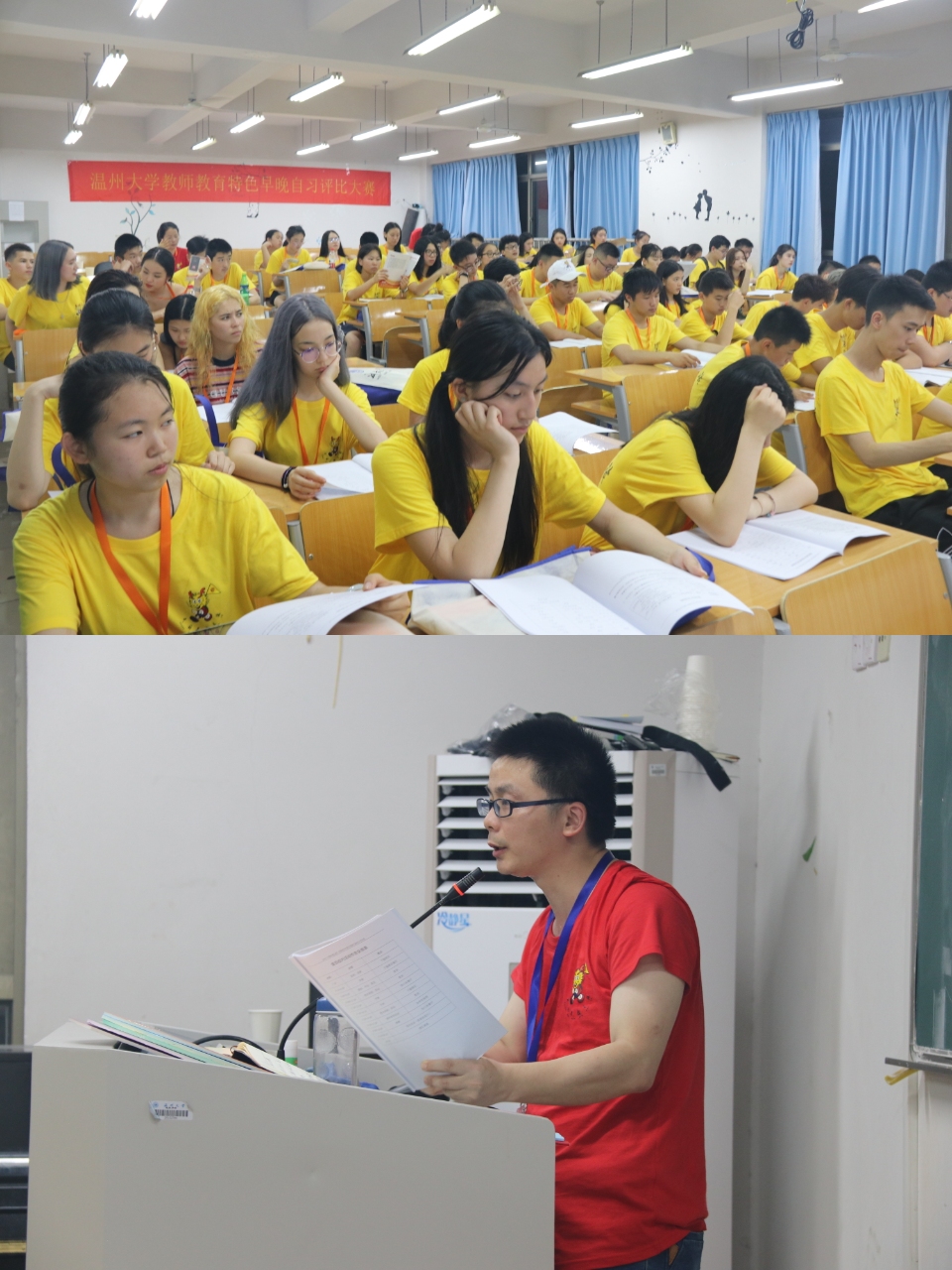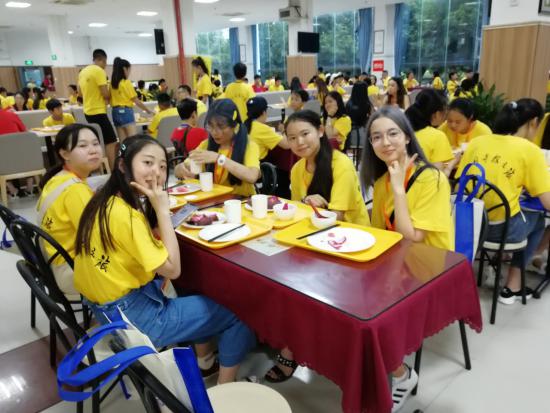 今日上午温州大学各营志愿者和老师通过提前准备,有条不紊地进行志愿者现场报道、信息确认、分发物品、办理入住等一系列工作,直至傍晚完成大部分学生的报道和入住工作。营员们在完成一系列的报到手续后,领取了营服、营员手册、教材等,入住酒店休息,并在怡可乐餐厅吃上丰富而可口的晚餐。