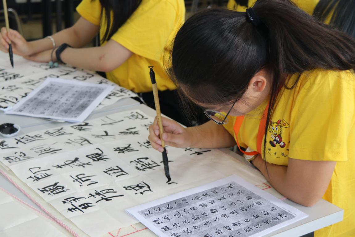书法是中国传统文化不可或缺的一部分,更是华夏文明精髓的代表。营员们跟随老师学习书法的基本要领,从握笔姿势开始学起,到简单的笔画和汉字。虽然学习的时间短暂,可是营员们学得有模有样。来自美国的杨洋告诉记者:“来中国之前,我简单学习过汉语,不过今天是我第一次学习写毛笔字,这是一个让我享受的过程。书法是一门艺术,我越来越喜爱中国,喜爱传统文化。回到美国后,我不仅要继续写毛笔字,还要把它介绍给我的朋友,让他们也感受一下中国传统文化的魅力。”