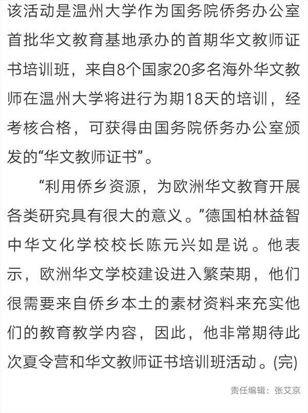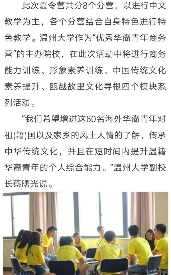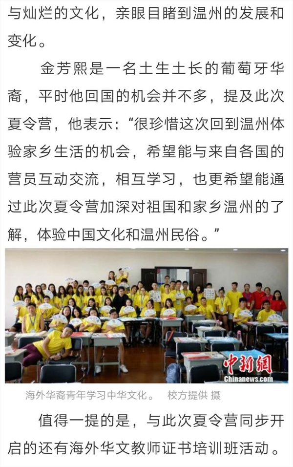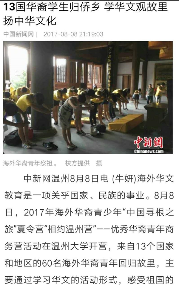 温州华裔青少年寻根之旅夏令营