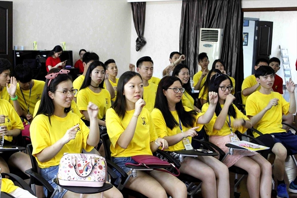 7月14日下午,2016优秀华裔青年商务营的课堂以一种特别的方式开场。本次讲座的主讲人是温州大学通用飞行学院英语特训中心总监、慈济慈善事业基金会志工刘书云。刘老师和她的师姐及助教在课堂伊始教营员简单的手语,“我”,“爱”,“你”。随着乐声缓缓响起,刘老师带着她的师姐和助教一起为营员表演了手语舞《给你》,营员们都看得很投入,不自觉地也跟著学习,一曲完毕掌声阵阵。第二支手语舞《love and care for all》,营员们在刘老师的带领下一起完成了手语舞。
