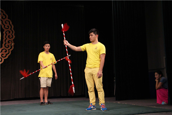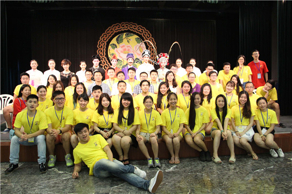 在瓯剧艺术研究院的精心安排下,整个活动既注重互动性、娱乐性又体现知识性,专业性。优美的水袖表演后,主持人向营员们介绍了瓯剧的历史和戏曲的基本知识,为了让这群“香蕉人”身临其境地体验瓯剧表演,主持人邀请华裔青年们走上舞台现场学习水袖舞、耍花枪的动作,营员们兴致勃勃,学得有模有样。接着营员们享受了一场瓯剧的饕餮盛宴,整场演出精彩纷呈,气氛热烈:幽默的佛珠功加上滑稽、夸张的丑角扮相让台下笑声不断;《扈家庄》“扈三娘”英姿煞爽,引来一片叫好声;《酒楼沙场》武技精湛,悠扬的民乐演奏让同学们陶醉其中,猴戏《齐天大圣孙悟空》更是将气氛推向了高潮。表演观看结束后,华裔青年们纷纷走上舞台向瓯剧演员们讨教动作要领,学得不亦乐乎。