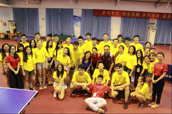 7月12日,华裔青年商务营的行程满满当当,创业设计和模拟企业课程还意犹未尽,晚上在学院路校区的乒乓球赛又拉开了序幕。此次比赛特别邀请温州大学国际合作学院的书记、温州大学教工乒乓球协会会长朱建平担任教练和裁判。