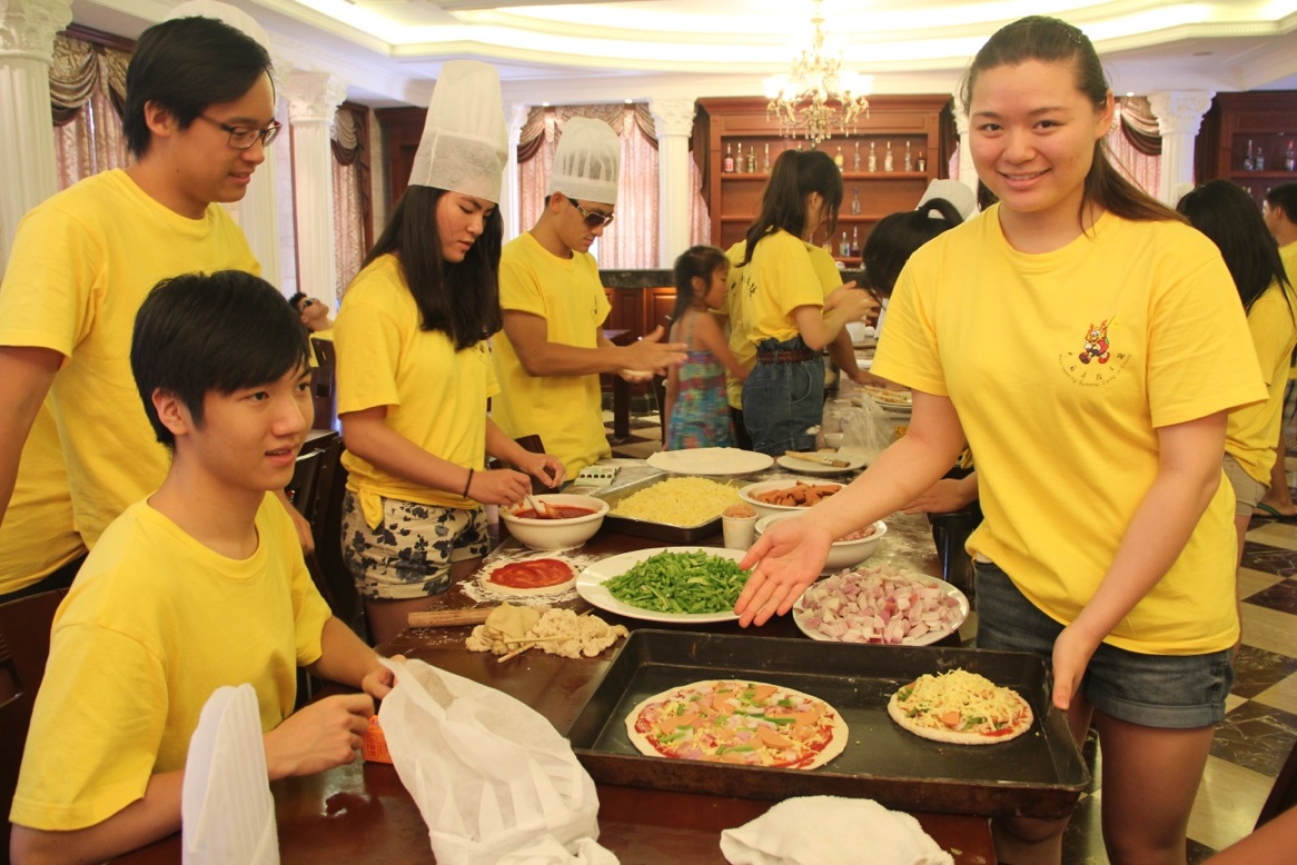品尝着自己亲手制作的食物,营员们别提多开心了,纷纷比较着哪一组做得形状最好、味道最美。在吃猪肉酥之际,糕点师傅又示范了匹萨的做法。作为匹萨的故乡——意大利,很多来自意大利的营员踊跃表示自己也能示范。既然已有这么多“本土师傅”在,大家也顾不得吃,纷纷又开始做起匹萨。果然,匹萨的制作难度小了很多。20分钟后,新鲜美味的匹萨隆重上桌。