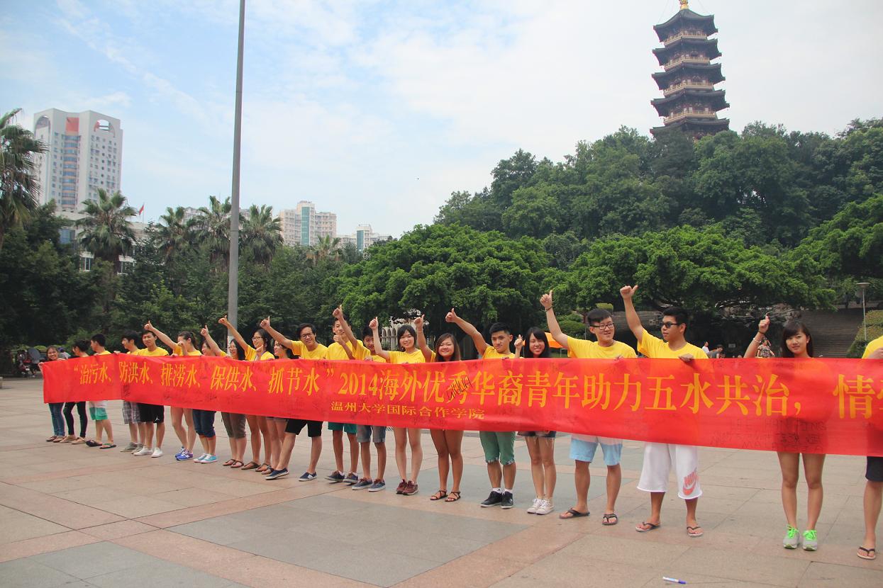 图为2014年优秀华裔青年营营员开展“助力五水共治,情牵美丽故乡”公益活动