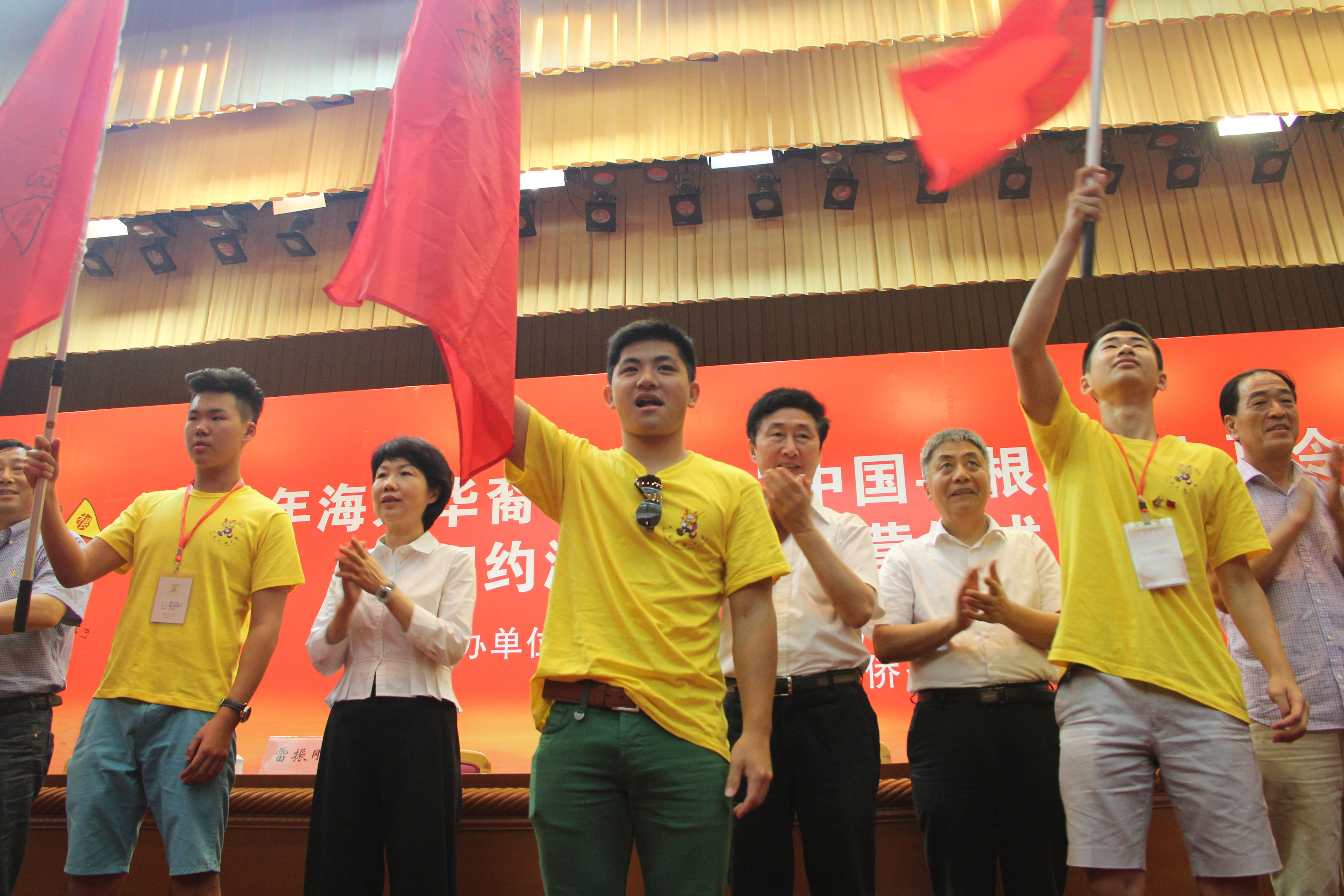 7月11日上午,优秀华裔青年营参加了2014年“中国寻根之旅”夏令营“相约温州营”开营仪式。来自20个国家和地区的450余名华裔青少年将分别参加6个分营、18至34天的夏令营活动,学习中华文化,体验家乡的风土人情。国务院侨办文化司司长雷振刚、温州市人大副主任王小同、市政府副市长郑朝阳、市政协副主席戴祝水等领导出席开营仪式并为营员代表授旗。开营仪式由市侨办主任鲍卫翔主持。