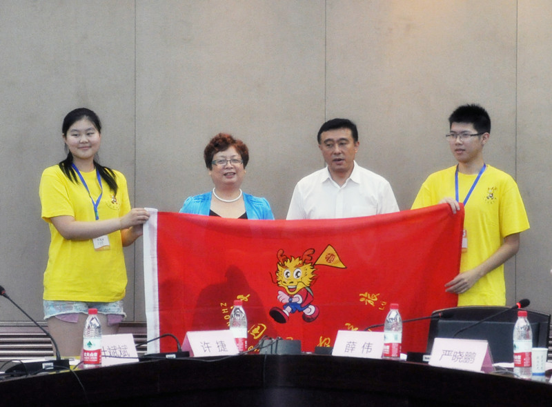 温州市侨办副主任许捷对温州大学分营进行了授旗仪式,开营仪式正式结束。在接下来的19天时间里,来自世界各地的华裔青年营员们将欢聚在温州大学这个大家庭,一起度过特别的暑假。