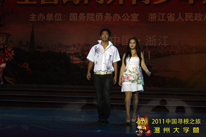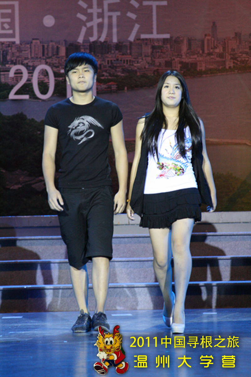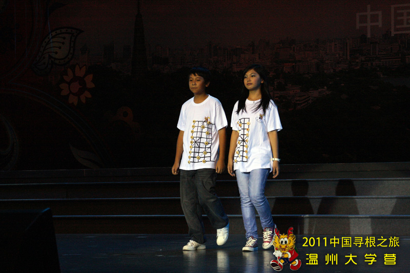 在联欢活动上,温大营员表演的服装走秀节目《中国风》,所表现浓厚的中华文化底蕴,深深感染了在场的每个人,赢得了阵阵掌声。本次服装秀以中国风为主线,在日常的服装之上通过绘画,剪裁,黏贴等各种方法融入了如国画、龙凤、书法等传统而且历史悠久的中国元素。很多服装都使用较为简单的方法将现代的时尚与古典的优雅恰当融合,其中各种添加元素的制作均为营员在老师的指导下独立完成,让本次参加夏令营的营员既有个性又富有中国风。