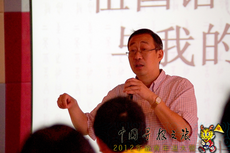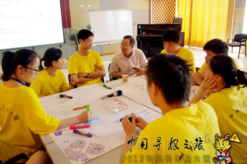 7月24日上午九点,华文教育专家、温州大学国际合作学院院长严晓鹏博士在温州大学为2012中国“寻根之旅”海外华裔青年文化营的营员们开展了一场主题为“祖国语言文化与我的成长”的专题讨论课。