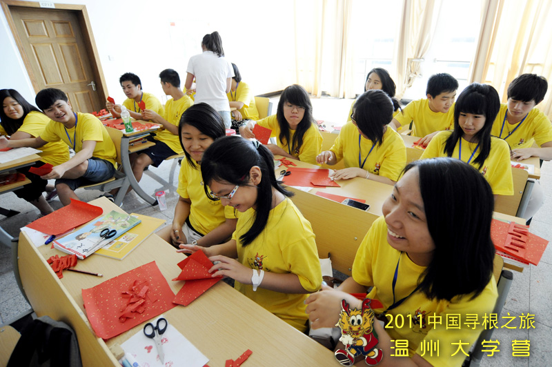 方寸之间尽显无限创意,双指之间玩转一纸乾坤。7月20号上午,在温州大学专家楼教室里,2011海外华裔青少年“中国寻根之旅”夏令营温大分营举办了一次别开生面的剪纸课。