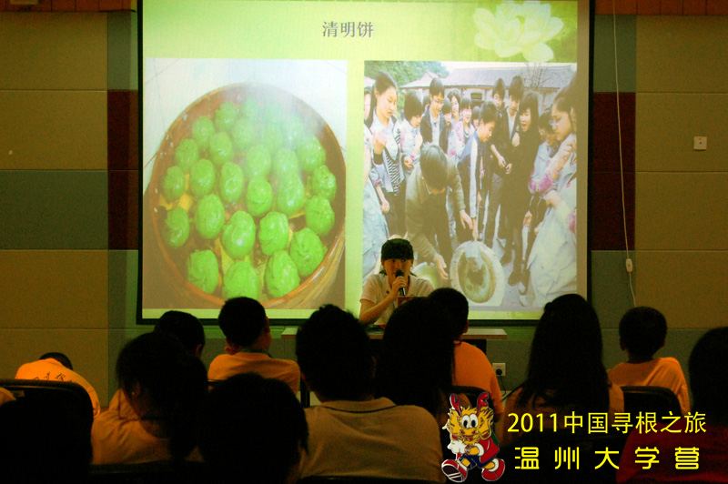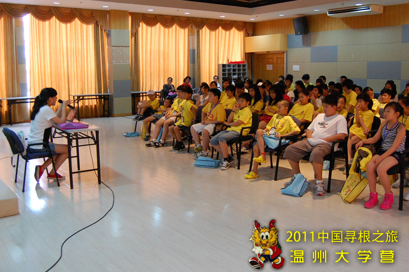 “ 每个人都有自己的故乡,每个人的故乡都有自己独特的民情和风俗,故乡独特的民情和风俗是游子们身上永远的根!”在2011海外华裔青少年夏令营温州大学分营的民俗课上,王老师的一句话牵动着台下85名海外华裔青少年的心。