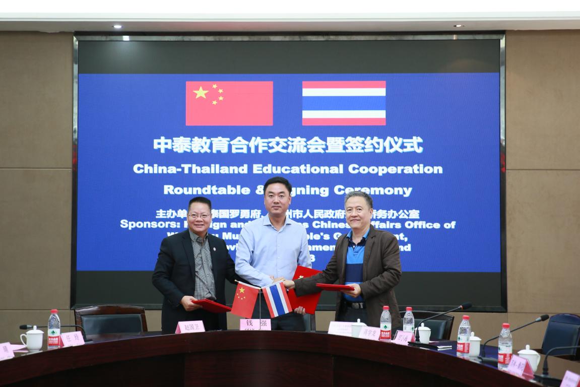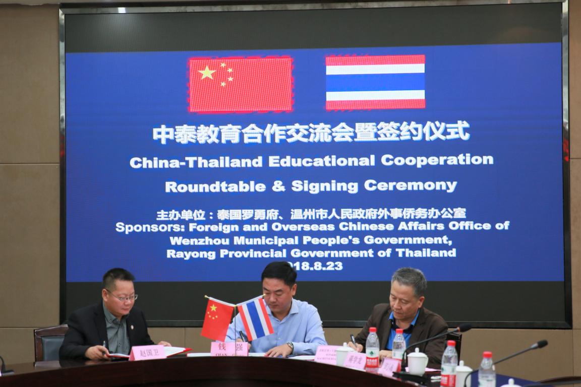 三方共同签署《温州大学、泰国温州商会和泰国罗勇达信基金会合作推进中泰教育文化交流意向书》