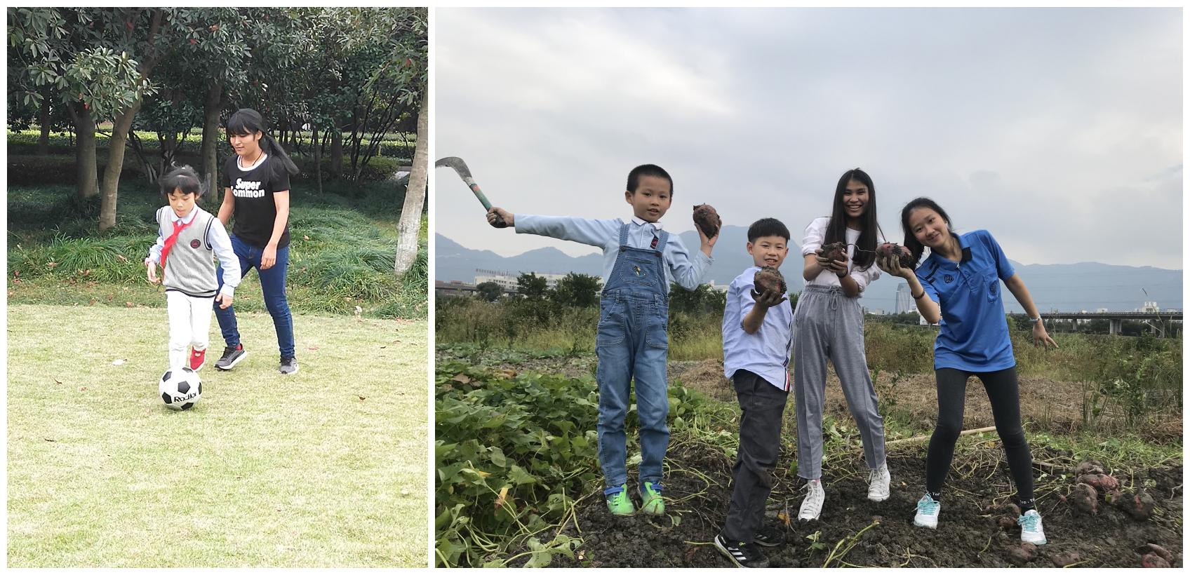 每个家庭的安排都各有特色,有户外运动如爬山、踢球、挖番薯等。