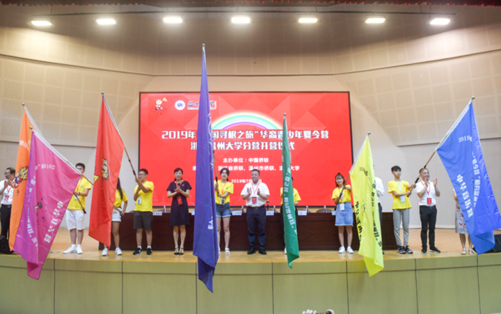 “如果你累了,请你靠一靠祖国的肩,侨联与你心心相连……”伴随着优美动听的歌声,2019年“中国寻根之旅”华裔青少年夏令营温州大学分营拉开帷幕,出席开幕式的领导、志愿者以及营员在现场一起聆听这首歌,歌声在报告厅久久回荡,每一颗澎湃的心也久久不能平静。