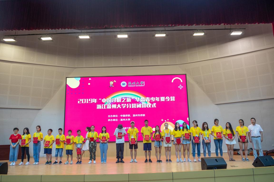 为表示对温州市侨联、温州大学的感谢,来自全美中文学校的领队代表,特别赠了“万里寻根 四海一家”和“中华文化 薪火相传”两面锦旗。来自西班牙中文学校的领队代表也赠送了两份精美的礼物留念。本次夏令营温大分营是温州大学20年来承办的规模最大、参与人数最多的“中国寻根之旅”夏令营。温大分营由五大特色营组成,分别为中华领袖营、中华武术营、中华音乐营、中华才艺营、中华设计营。以培养面向世界舞台的优秀华裔青少年为目标,分班开设特色课程学习,辅以传统文化、参观考察等课程,帮助华裔青少年“寻根、铸魂、圆梦”,增进优秀华裔青少年对祖(籍)国以及家乡的风土人情的了解、认识,传承中华传统文化。(通讯员:章瑚 廖一帆)