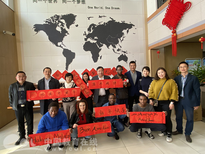 来自越南的2020级汉硕留学生代表陈氏玉映告诉记者,留在学校一点都不觉得孤单,要把握寒假时间好好学习,提升中文水平;来自土库曼斯坦的2019级机械工程留学生代表哈利勒表示自己非常热爱中国,热爱温州大学,正在非常努力地学习中文,多多体验中国文化,希望能够一直留在中国;来自津巴布韦的20级汉语言专业学生李凯文已经在这里学习了4年多,他表示学习书法写“福”字是一个令人耳目一新的活动,虽然学校领导来的时候他有点紧张,但结果一切顺利,大家都玩得很开心,他也学到了更多书法知识;来自坦桑尼亚学生陆求是说,“今天对温州大学的国际学生们来说是美好的一天,自全球抗击新冠疫情以来,老师们对我们给予了无微不至的关心,我想代表所有国际学生,对学校领导和老师们表达由衷感谢,您们辛苦了!”
