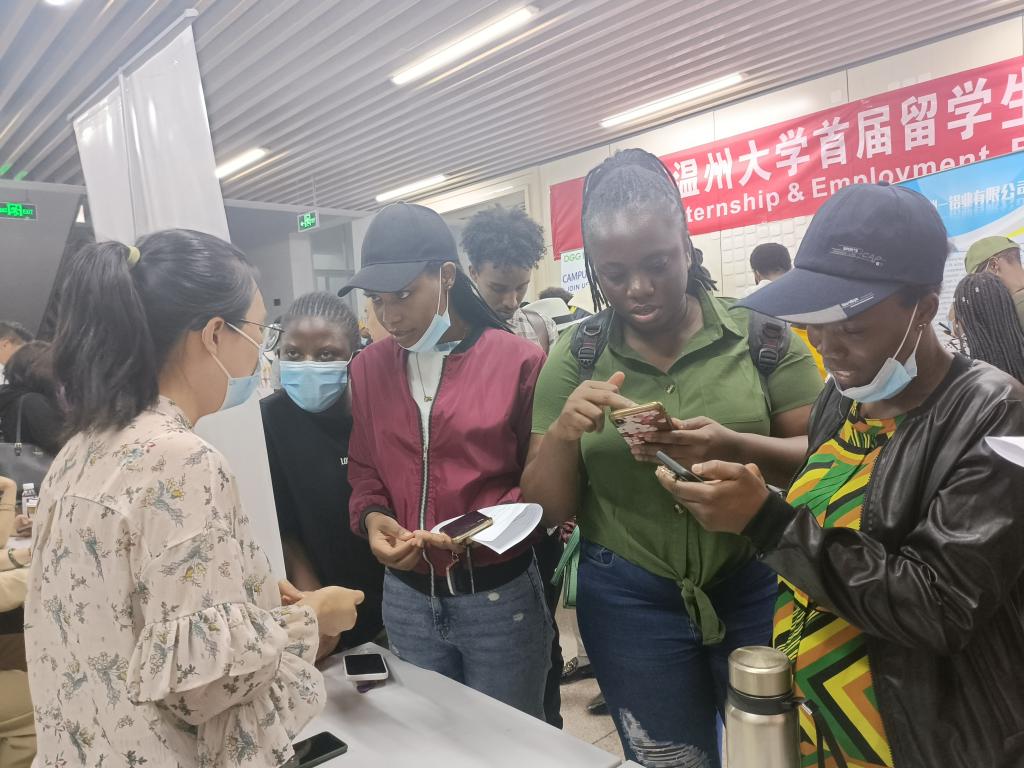 “我在家乡有从事贸易工作的经验,在中国求学四年,学到了很多东西,也得到了许多鼓励,希望有机会留在中国工作。”来自也门的国际学生晨晨是温州大学国际贸易专业大四学生,他表示感谢学校举办这样的专场招聘会,让国际学生不出校园就可以和用人公司面对面,寻找合适自己的就业机会。
