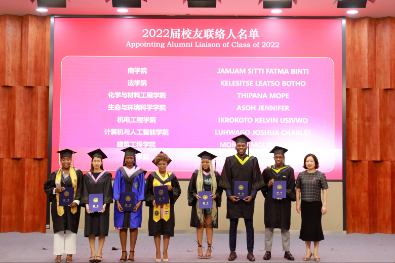 毕业典礼对优秀国际毕业生、校友联络员、语言结业生等颁发证书,并为全体国际学生毕业生颁发学位证书,并拨穗正冠、合影留念。