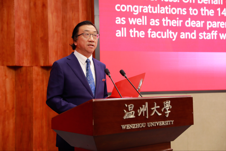 温州大学副校长蔡曙光在致辞中充分肯定了他们所取得的成绩,祝愿全体毕业生前程似锦,幸福安康。他表示,“独学而无友,则孤陋而寡闻”,希望同学们学习借鉴他人和他国文明的长处,成为学生祖国与中国长期友好交流的使者。