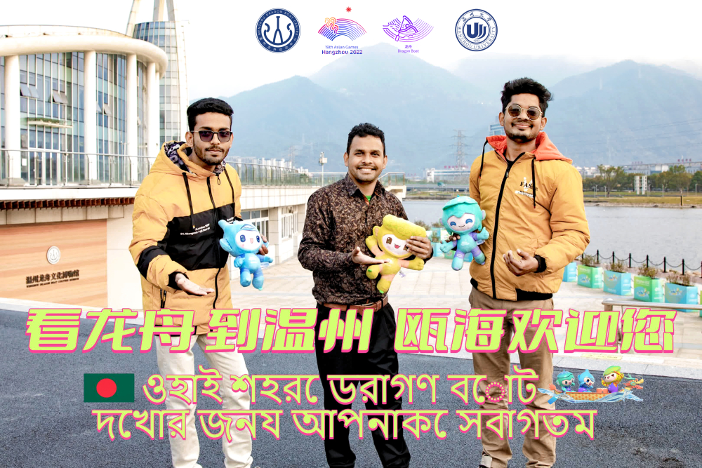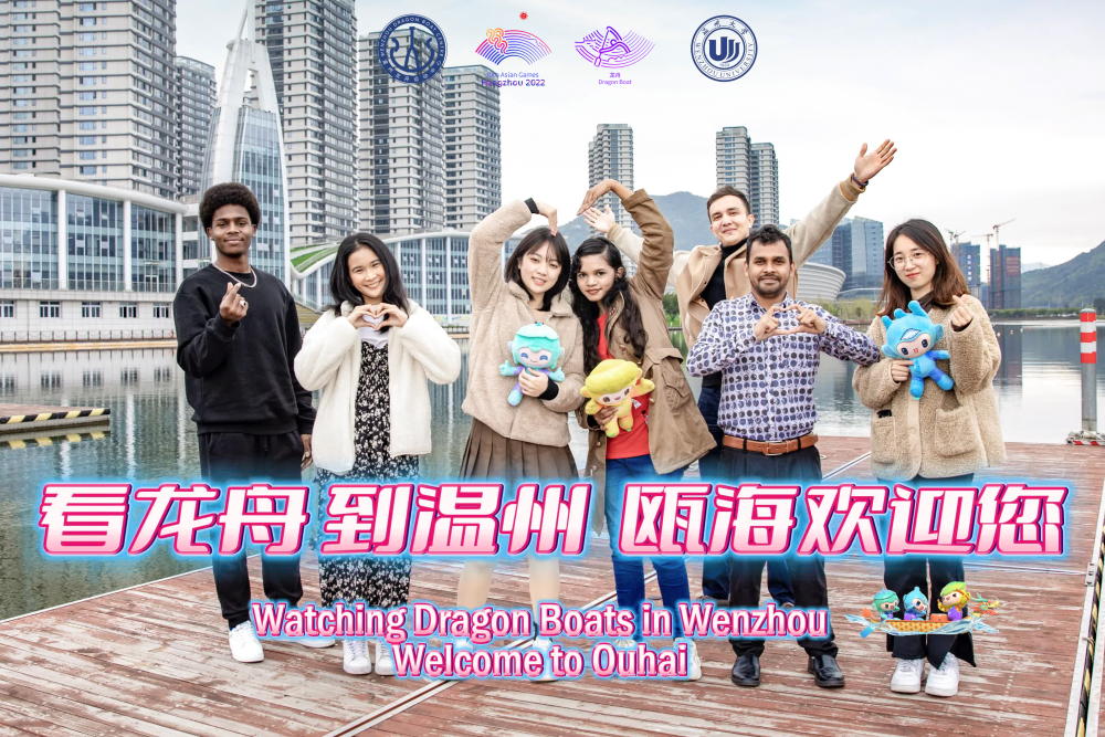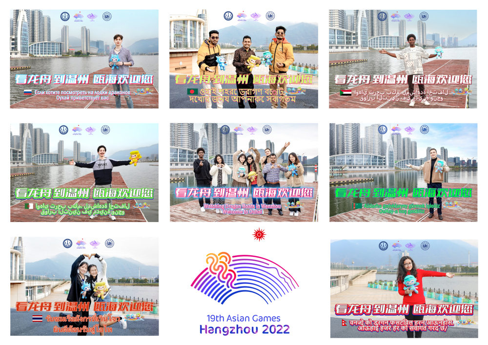 在杭州亚运会吉祥物向全球发布三周年之际,4月3日下午,一群来自温州大学的留学生带着亚运会吉祥物宸宸、琮琮、莲莲来到温州龙舟运动中心,通过拍摄祝福视频、宣传照片的方式为亚运龙舟赛事打call。