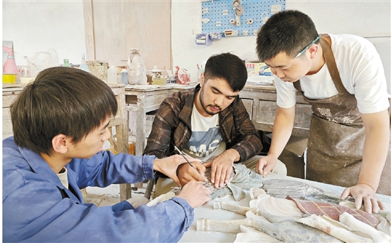 据悉,仰义街道于2022年成立崇林斋彩石镶嵌“共富工坊”,主要采用石雕、浮雕与花板雕刻相结合的技法制作屏风、茶具、首饰盒等文创作品。该“共富工坊”占地1000余平方米,通过村企共建,吸纳周边村社富余劳动力20余名,以产教合作、定岗实习及“学徒制”等方式,培养实用型、技能型彩石镶嵌工匠,打造党建联建下的就业模式。