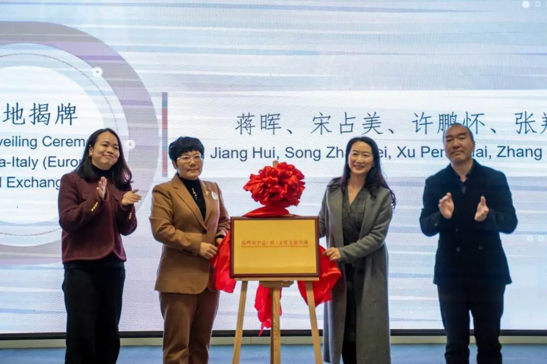 宋占美院长为基地揭牌。宋占美还与温州市鹿城区政协常委、温州市海外传播中心主任许鹏怀,意大利咖啡学院中国区负责人张翔,签署了共同建立温州中意(欧)文化交流基地的合作协议。
