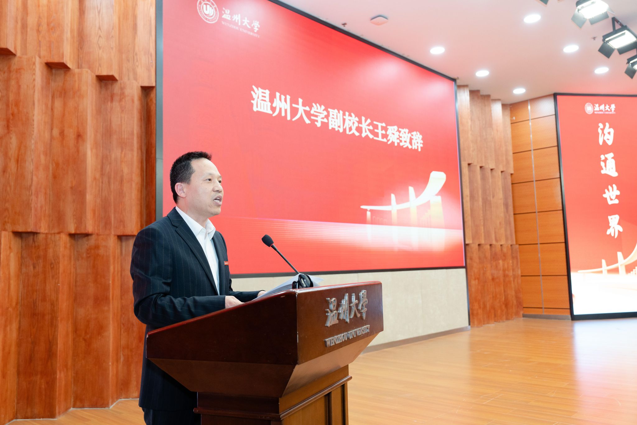 (图为:温州大学党委委员、副校长王舜致辞)