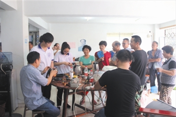 “家电义诊”实践队体现着学院信息系的专业特长,开展家电维修服务、用电安全、节能用电等知识宣传等活动。