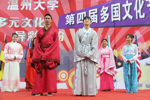 中新网6月7日电 据温州侨网消息,日前,国侨办华文教育基地温州大学第四届多国文化节在该校华表广场举行。来自18个国家和地区的100多名留学生带来了极具异域特色的文艺汇演和多国美食展,让该校师生过足瘾。
