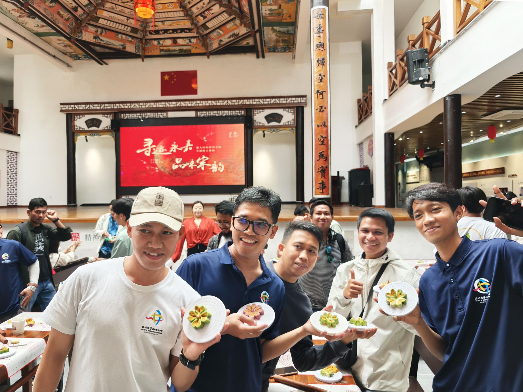 青山班69名印尼籍学员走进永嘉,沉浸式感受了温州楠溪江的山水之美。除了品尝到当地的美食,学员还学习制作了中式酥点桃花酥。