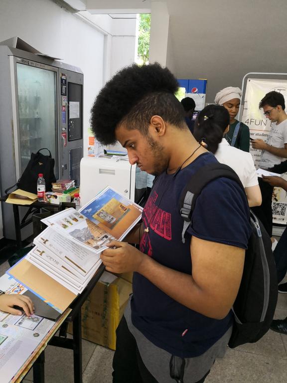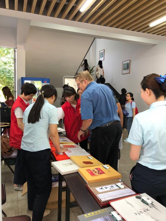 此次展品包括改革开放、建军、红楼梦、中国书法、生肖、世界遗产等十二套邮品内容。为宣传中国集邮文化,普及集邮知识,弘扬优秀中国文化,邮政公司工作人员准备了数百份精美的邮品送给参观者,并耐心地给学生讲解邮票的起源和三要素、我国邮票发行史、集邮文化等相关知识,受到中外学生的普遍好评。在展览现场不仅举行集邮知识有奖问答活动,更可自己动手,将自己的照片印制到明信片上,留作纪念。