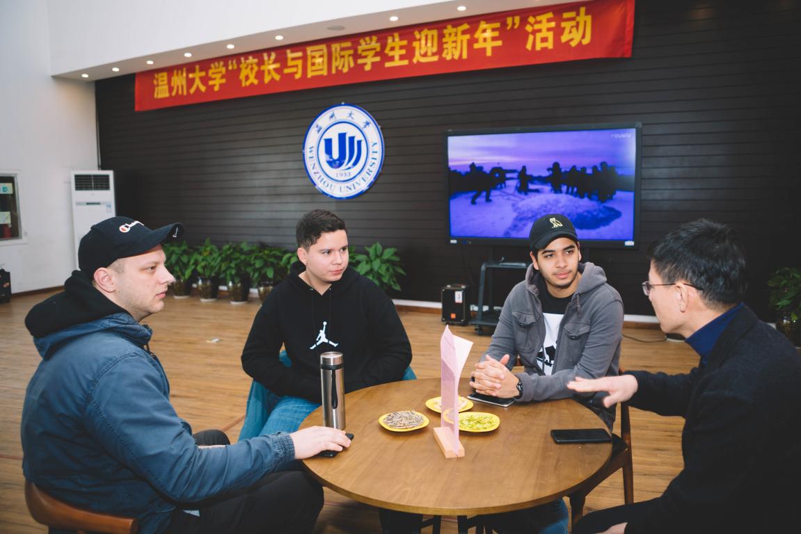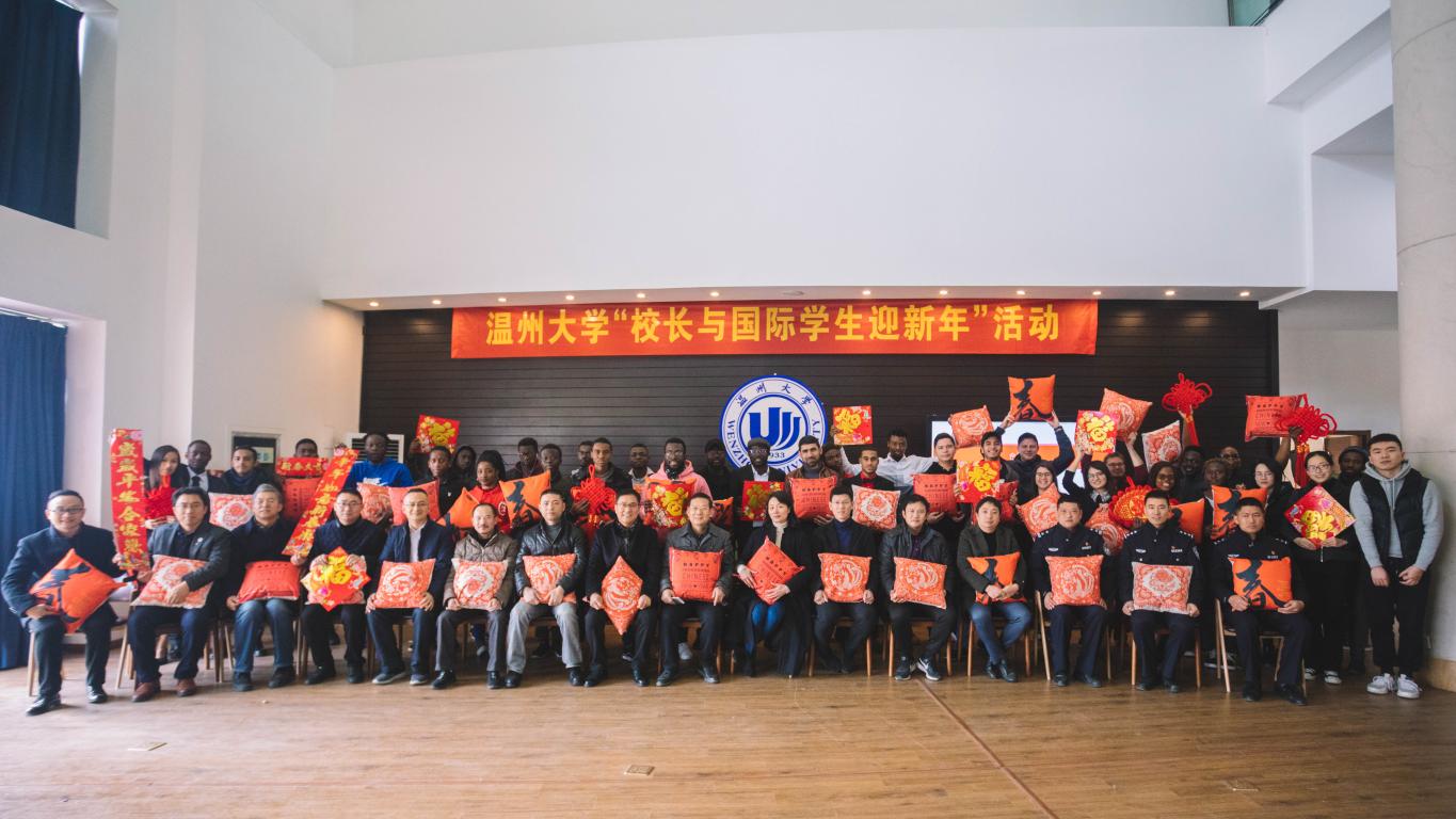 1月28日,正值中国农历小年,温州大学“校长与国际学生迎新年”活动在南校区行政楼校友之家举行。党委委员、副校长钱强,校留学生管理工作委员会委员,专业学院相关负责人,茶山高教园区派出所、国际学院(留管部)相关人员,10个专业19个国家的30名留校国际学生代表参加了此次活动。