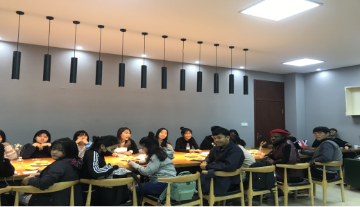 一楼创客咖啡吧里,航空管理专业的学生和来自孔子学院泰国春令营的学生参加了文化交流活动,活动旨在为中泰学生搭建一个语言训练、文化交流和友谊共建的多元平台,增强中泰学生之间的交流和沟通,提高泰国学生对中国文化的认识和了解,促进中泰学生之间的友谊。