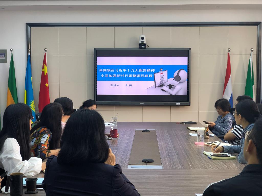 会上还深入学习了习近平十九大报告精神,传达了《关于全面深化新时代教师队伍建设改革的意见》、《教师教育振兴行动计划(2018-2022)》、《新时代高校教师职业行为十项准则》文件精神,指出加快教育现代化是习近平师德论述的鲜明主线。院长叶苗介绍了乡村教师梁俊、时代楷模黄大年等典型人物的先进事迹,指出教师应当从教书育人、教学答疑、管理服务、科学研究、扶贫支教等方面全面加强新时代师德师风建设。副书记陈文远表示,在学风建设方面,教师要对学生“高要求”、“严管理”,督促学生养成良好的学习习惯。与会教师也纷纷响应,表示一定会坚持“不忘初心,教书育人,为人师表”的教师本色,弘扬师德。