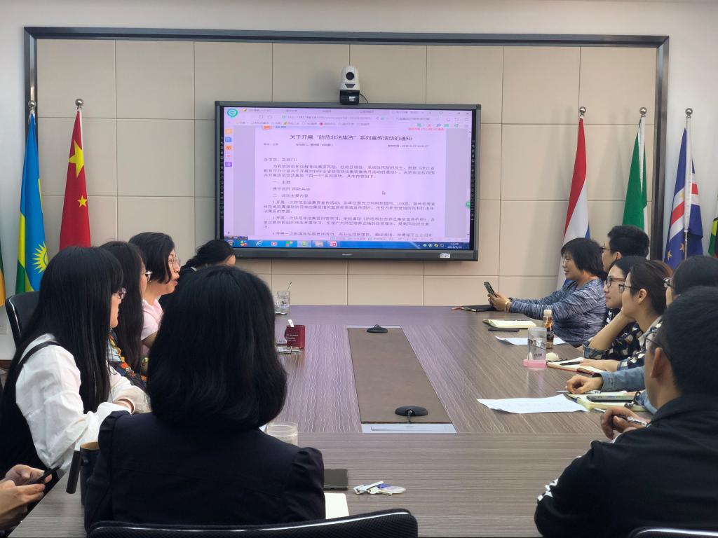 会上传达了《浙江省教育厅办公室关于开展2019年全省防范非法集资宣传月活动的通知》文件精神,并以“携手筑网,同防共治”为主题,围绕《防范和打击非法集资宣传手册》开展学习。院长叶苗介绍了当前非法集资常见手段及其危害,展示了“爱贷网”崩盘、“温商贷”暴雷等非法集资案例。她指出,高收益意味着高风险,每个人都应当吸取教训,提高投资警惕,增强鉴别能力。