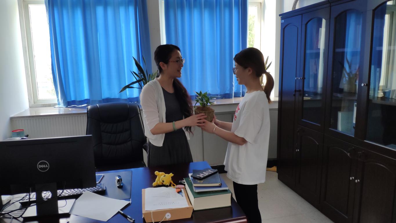 “这盆小植物能给办公室增添一分绿色,让老师多一分健康和快乐!”17航管程同学和他的专业课老师牛老师说道。牛老师告诉我们,“上课前收到同学们的祝福让我感到激动与感动”。汉语言推广教研室余老师在收到来自津巴布韦Pala同学送上的祝福与盆栽后,表示学生的肯定就是收到的最好的教师节礼物。