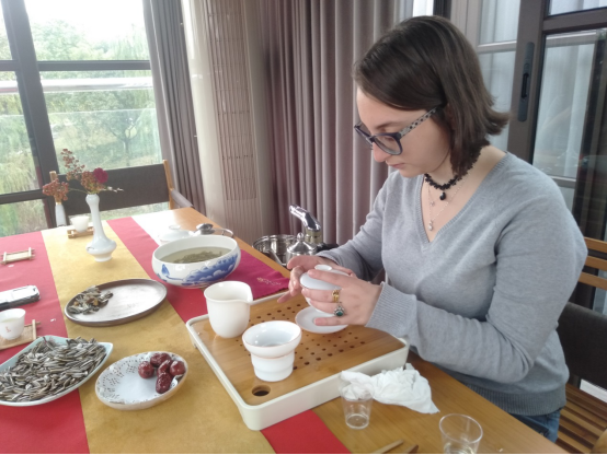 为了让每位留学生亲身体验到沏茶倒茶,鉴茶品茶等传统茶艺,留学生被分为几个了小组,分别处于不同的茶室。