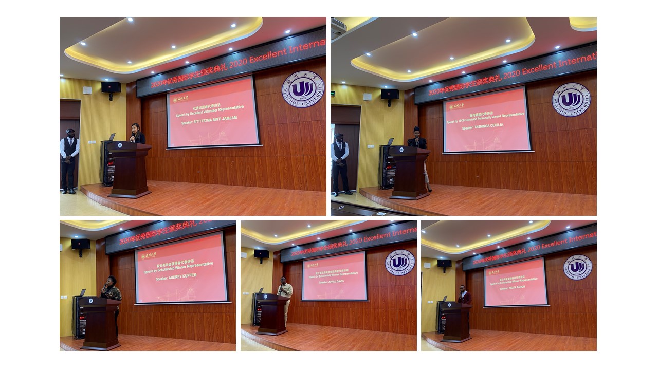 新成立的国际学生电视台设立,他们活跃在校园各处,发掘校园新闻,不仅仅为在校学生传递信息,更为在国外的学生带去学校的温暖,拉近了我校与境外学生的距离。优秀国际学生志愿者代表SITTI FATMA BINTI JAMJAM和宣传新星奖代表TASHINGA CECILIA分别发言,他们分享自己的工作经验和感想,引起台下师生共鸣,众多国际学生受到鼓舞。