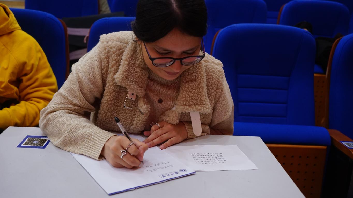 歌声仿佛还在耳畔回响,书法比赛的作品展示已经开始。工整、均匀、清晰的留学生汉字书写,让评委老师也忍不住感慨:“他们的字,有的比我写的还好看。”